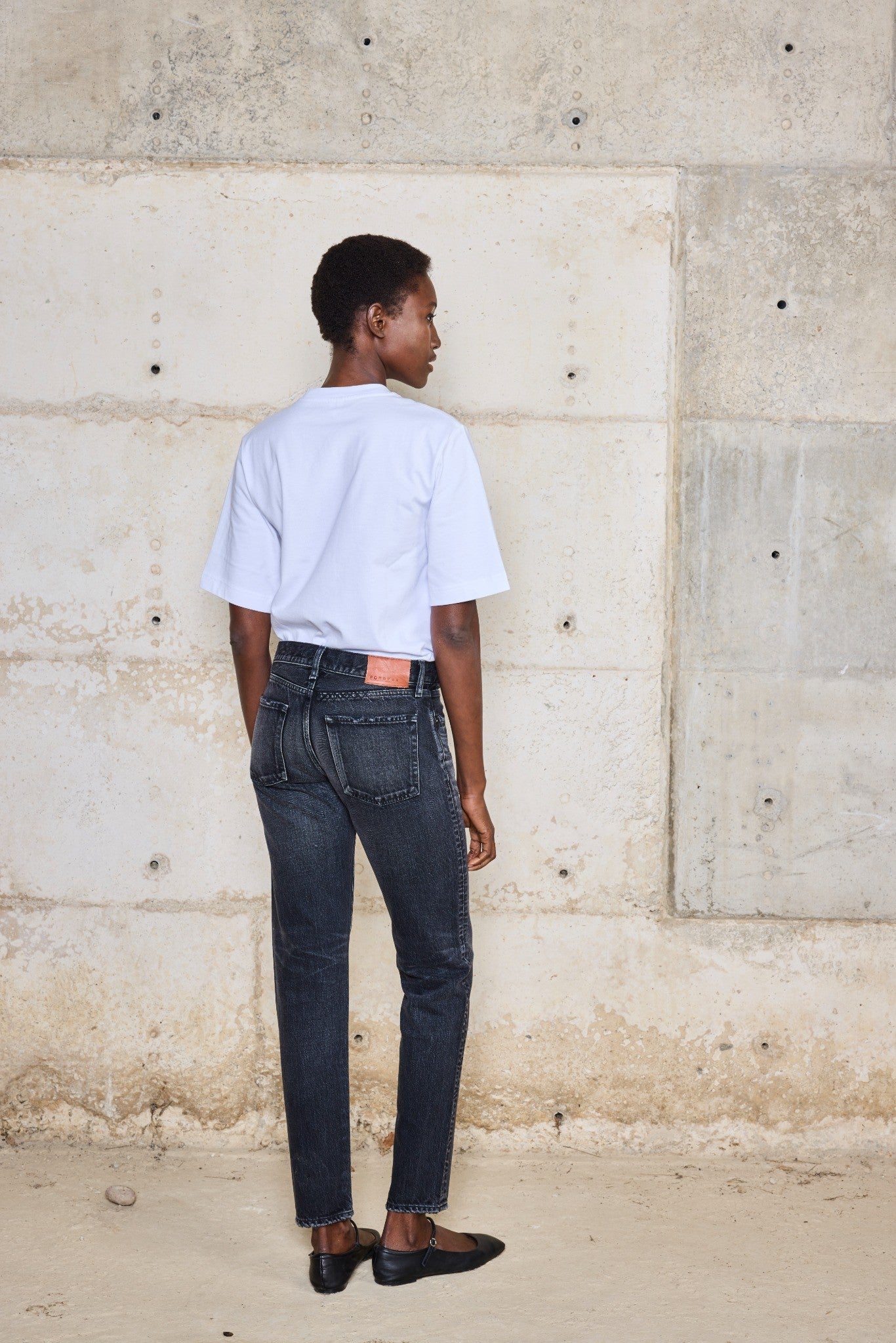 Le Okayama, Paint it Black incarne une nouvelle vision du jean tapered : une taille intermédiaire subtilement abaissée, qui conserve tout le maintien à l’arrière, et une jambe qui s’affine progressivement de la cuisse à la cheville. Résultat : une silhouette moderne, élancée, mais toujours confortable.