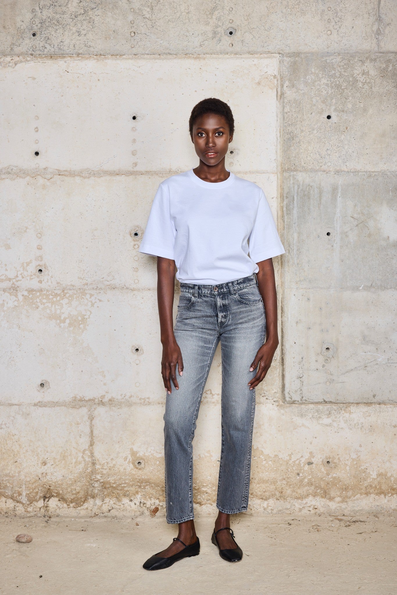 Le Okinawa Lonely Boy incarne la coupe pencil leg — droite mais affinée, entre le jean slim et le jean droit. La taille intermédiaire assure maintien et confort, tandis que la jambe épouse la silhouette sans la contraindre. Résultat : une ligne nette, allongeante, incroyablement polyvalente.